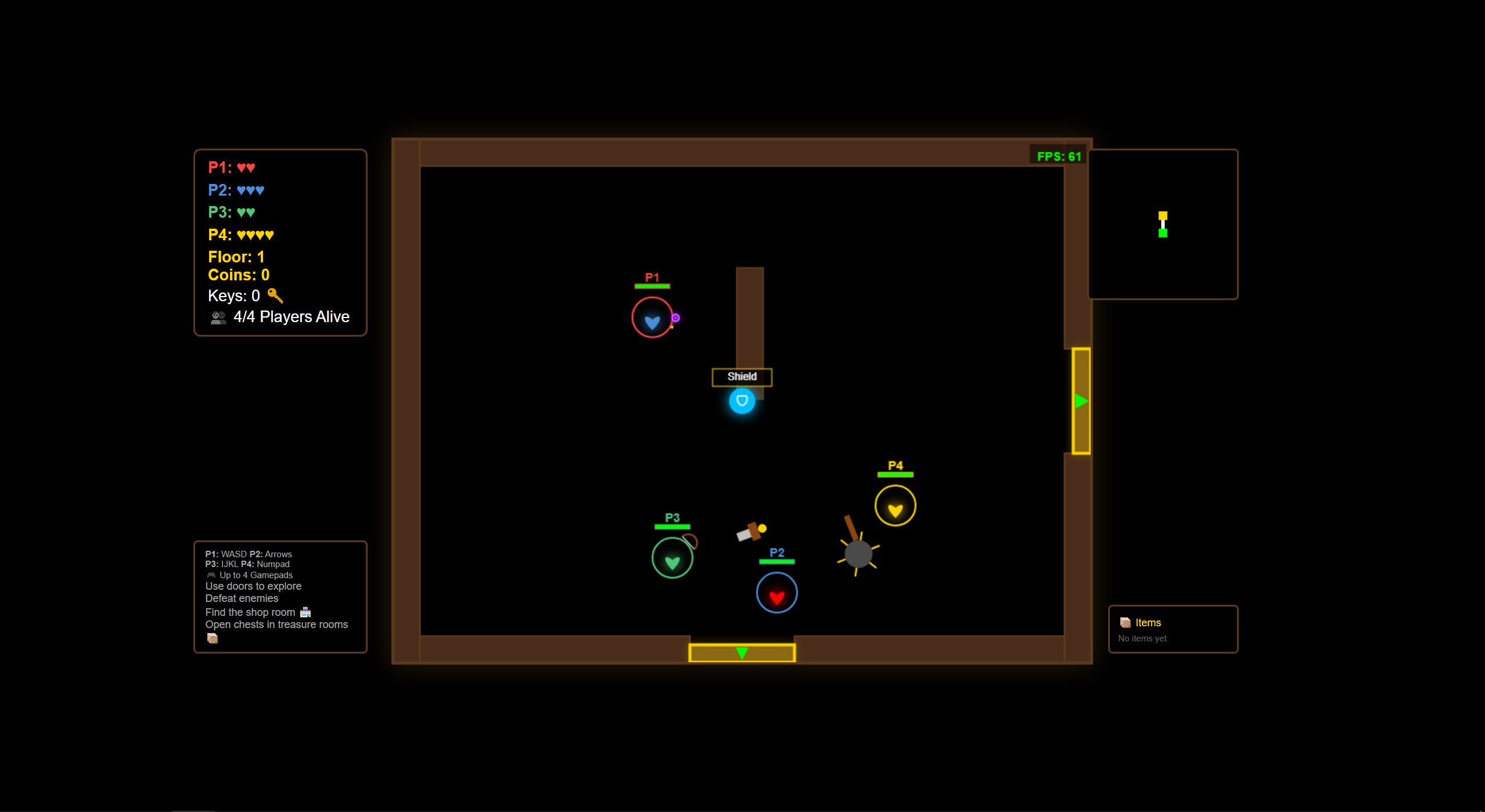 - Defeat all enemies in each room to unlock the doors
